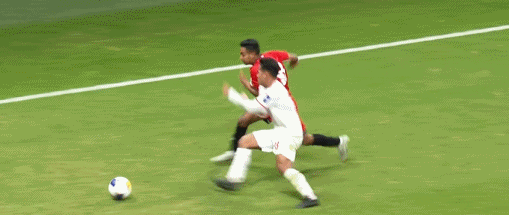 第45+2分鐘,雙方互有動作,卡西姆推倒對手吃到黃牌。