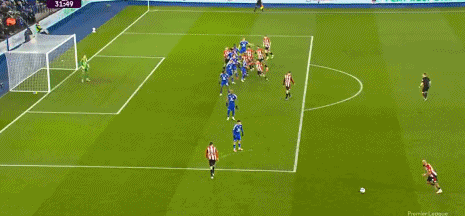 第32分鐘,姆貝烏莫開出任意球,內爾高頭槌破門,布倫特福德3-0。
