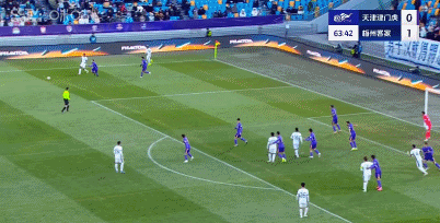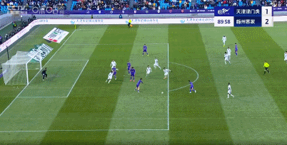 第90分鐘,扳回一城,薩爾瓦多助攻基萊斯墊射破門,天津津門虎1-2。