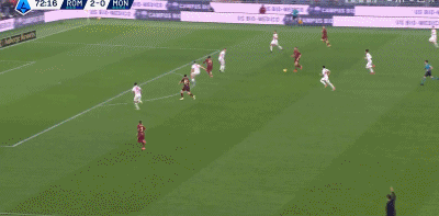 第73分鐘,安赫利尼奧禁區(qū)內(nèi)抽射遠(yuǎn)角破門,羅馬三球領(lǐng)先。